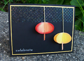 ReplyDeleteOh, what a COOL card! When I first saw the lanterns I thought they were those little crepe paper 3D thingys you see on cocktail drinks (don't know what they are called)--they look so 3-dimensional! And I just love what you have done to get the glittery background--must try that!