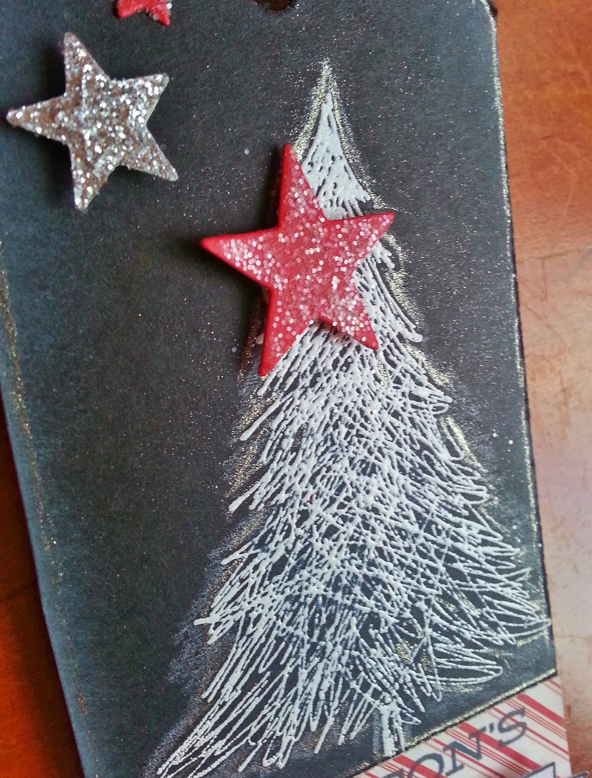 The tree is embossed with a Sizzix dot folder and then I colored each one with a chalk marker.