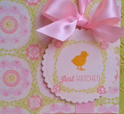 Last is a springy card with a cool spiral clip from Tracey and an adorable sentiment from Papertrey Ink's Egg Hunt set. It made me think of another older PTI set in my cupboard....Everyday Button Bits! I still love all of the Button Bits sets as much as the first day I received them in the mail.